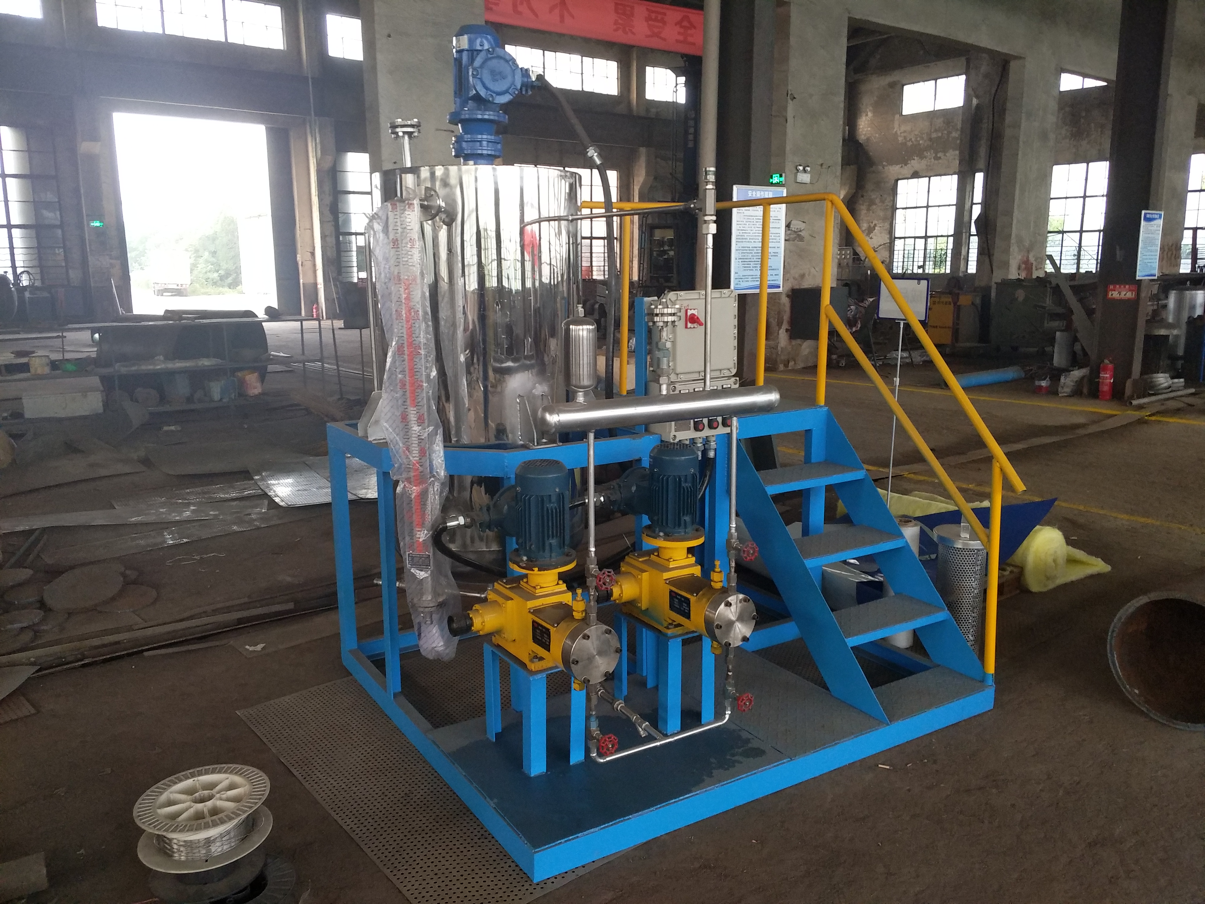 1、油田加藥裝置。主要用于在石油開采-向平臺上的井口和及其他系統(tǒng)注入絮凝劑、阻垢劑、緩蝕劑、破乳劑等各種藥液。