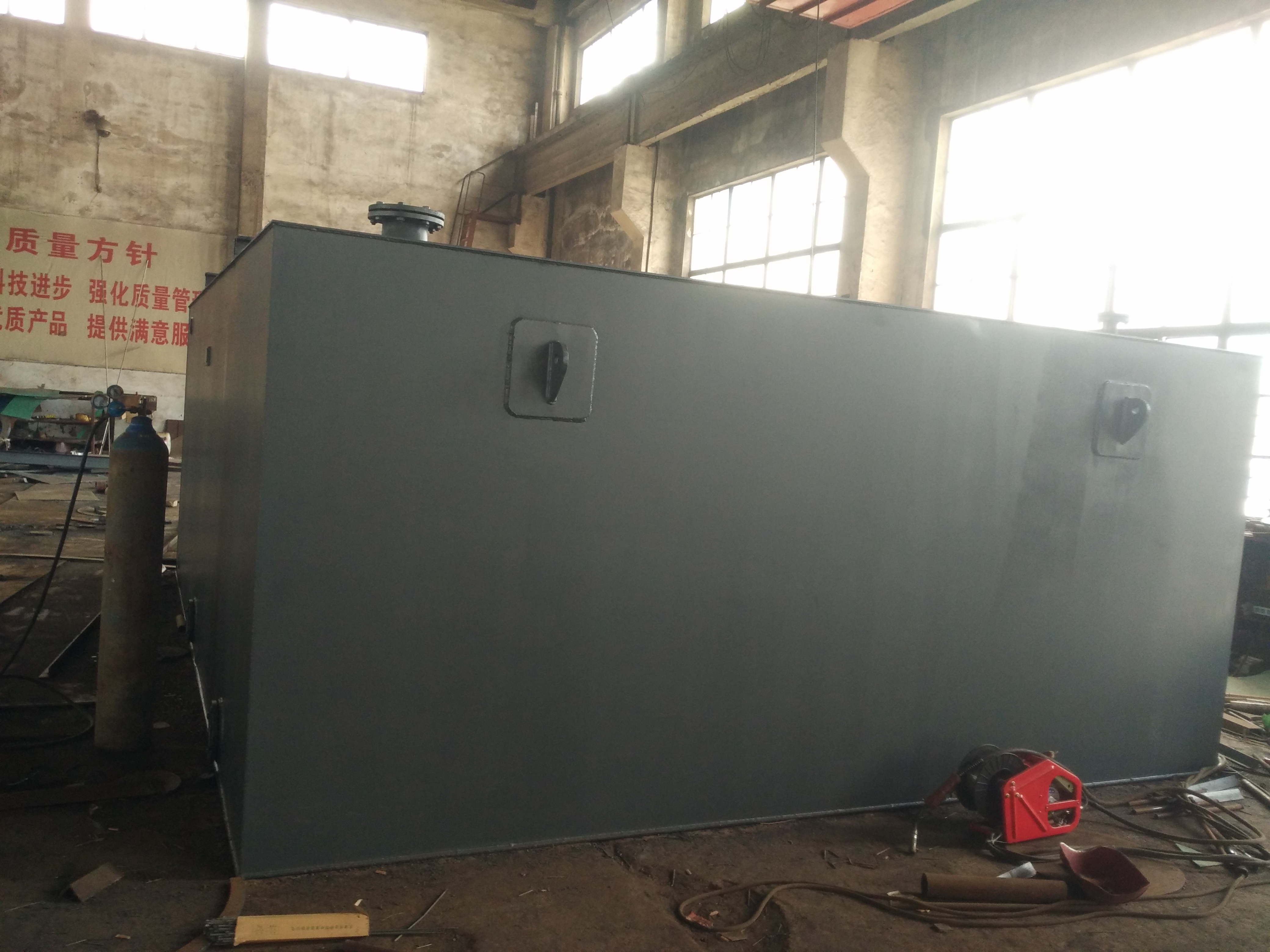 疏水箱是用來儲存疏水的,如低壓加熱器及其它用蒸汽設備在工作過程-形成的凝結水,一般情況下,雖有污染的可能,但是相比較而言,仍是比較純凈的,不論從經濟方面還是從節約能一方面考慮,都具有良-的利用-值。所以疏水箱就是把這些凝結水經儲存而預備在利用的儲水設備。結構形式分圓形和方形,產品系列有10m2、20m2、30m2、40m2、50m2。公司也可根據客戶需要進行設計制作。